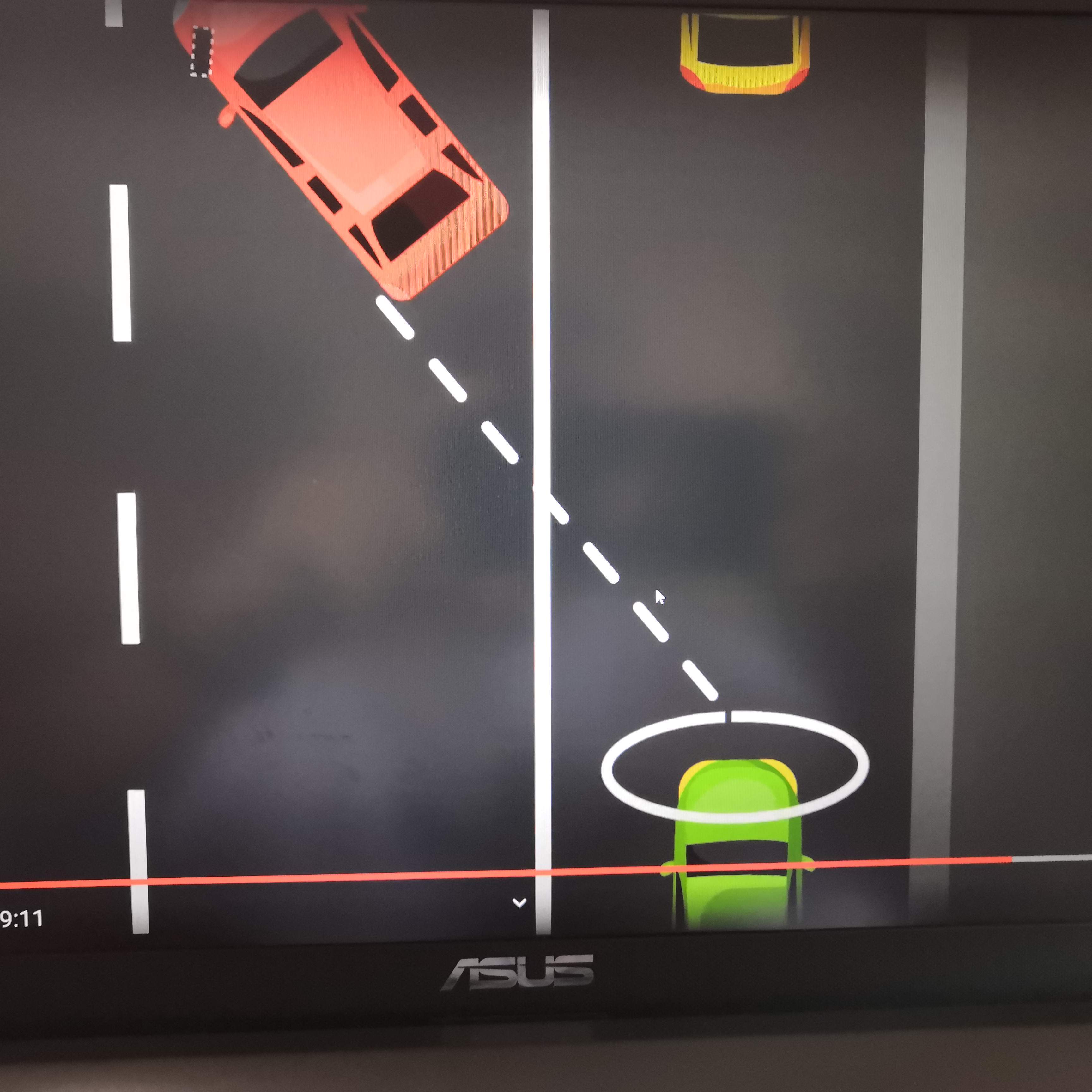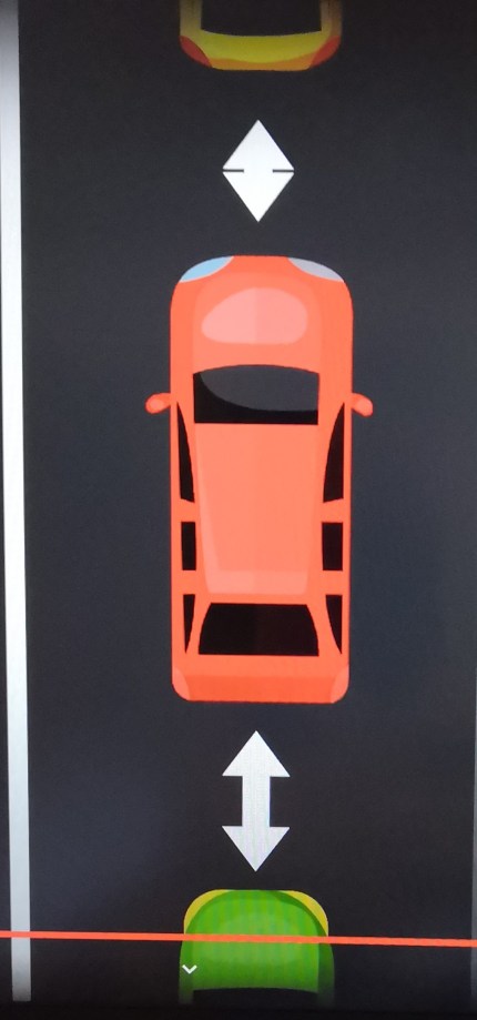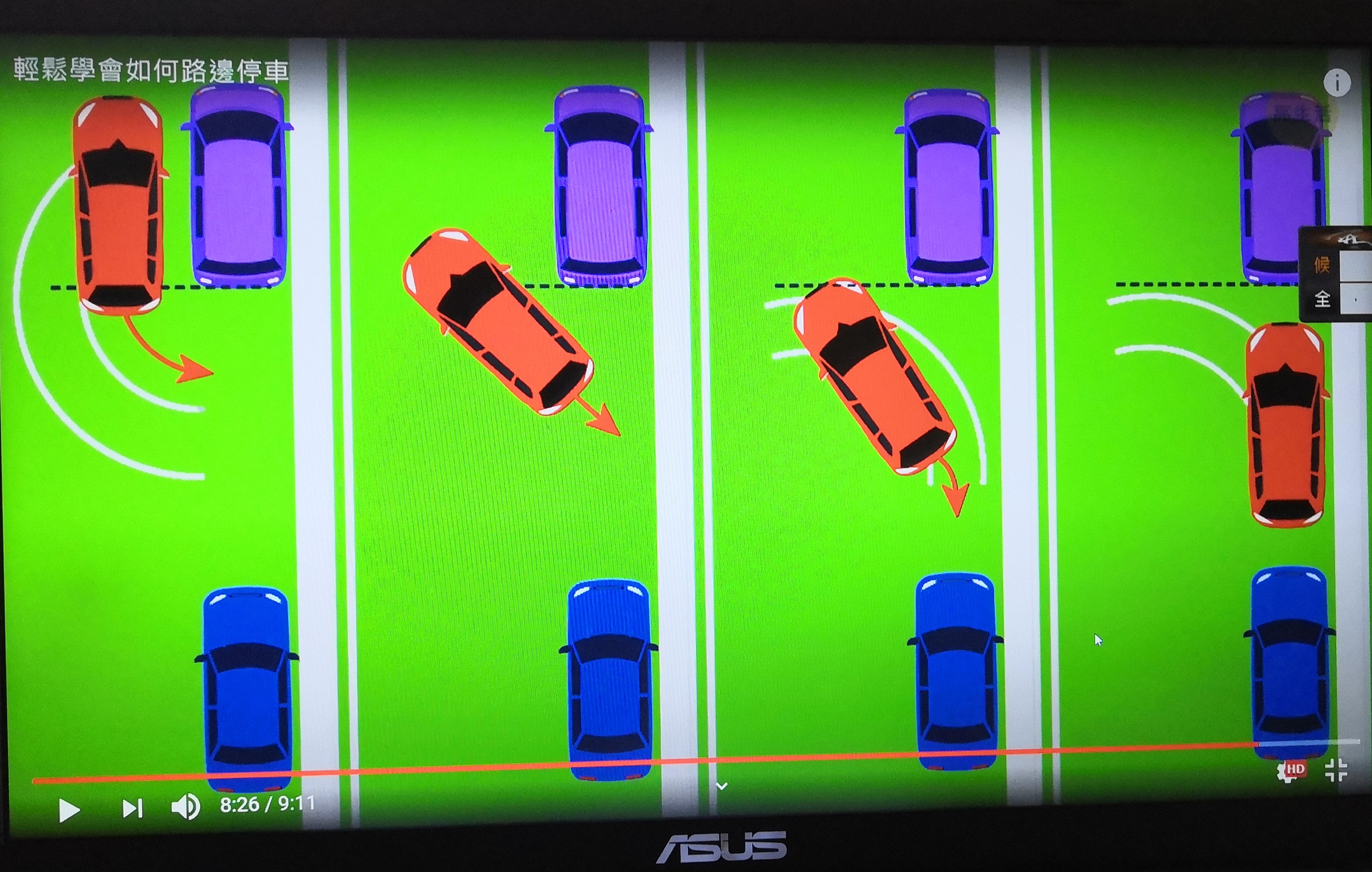 直至車子與車位白界線平衡完成 ok。
