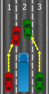 3. 進行: 確保周圍環絕對安全方可斜線拉出進行超越 (此時應該再重覆擰頭望多一次記住只係做明星,做明星熟練之後會自動轉賑為「過目記憶」)稱為「進行」。