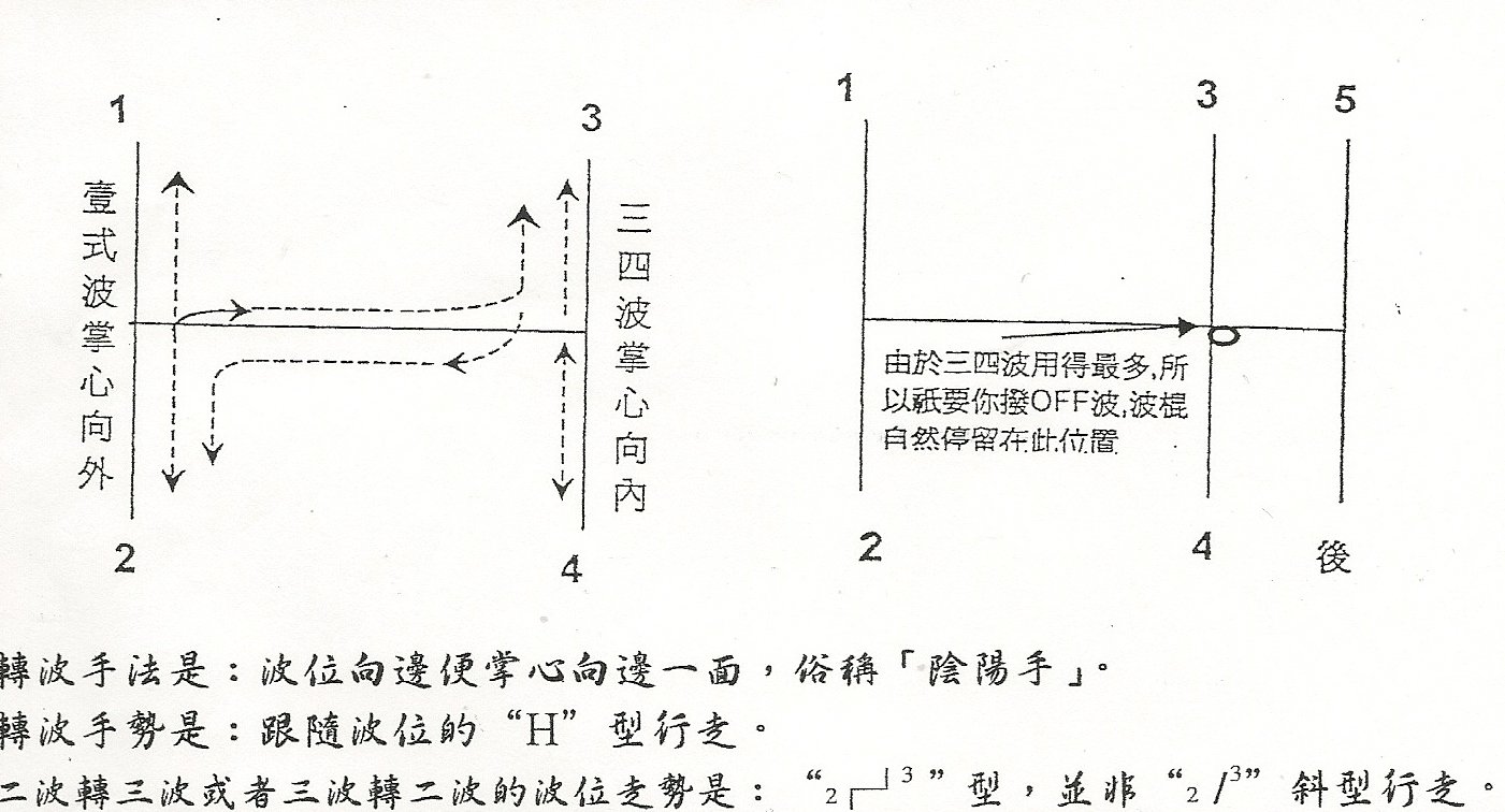當轉波時:不要用力「緊握」或「抓實」波棍頂的球形柄。當轉換變速桿位置時主要〔利用手腕的腕力來控制或者固定波位的方向,然後運用手掌輕輕壓在它的側面,托上或拉落就可以輕易地轉波〕。