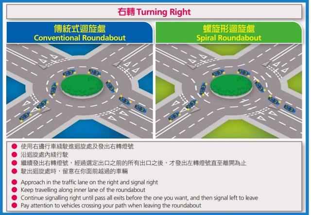 每天都見到不小駕駛者不懂得使用迴旋處,有些更加蓄意或無意之間咒罵欄截,阻人去路,總之行差又踏錯。 迴旋處規矩:《左邊讓右邊》即係入讓出《入迴旋處要靠右,出迴旋處要靠左》。