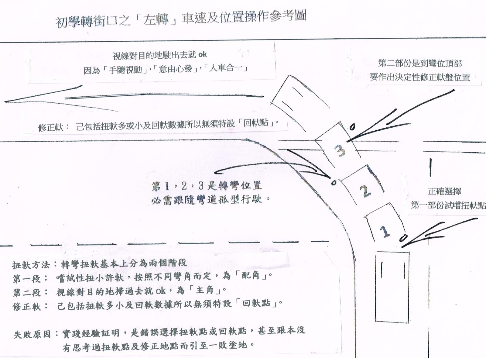 實踐經驗証明:轉彎位置失敗原因主要是錯誤選擇「扭軑地點,其次修正地點」有關,但係大部份失敗考生跟本沒有或者從來都沒有思考過這個問題,而引至一敗塗地。