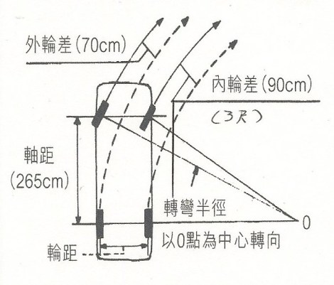 學轉彎首先要明白「內輪差」的既念,汽車內側的前後車輪行駛之軌跡差距,稱為 「內輪差」。 轉彎時怎樣避免尾轆觸及石壆,或「外輪差」會超越右邊白界線俗稱「大肚彎」。首先要明白汽車轉彎時最基本的理論常識 [內輪差]。 可以從汽車之行駛軌跡和位置去理解。