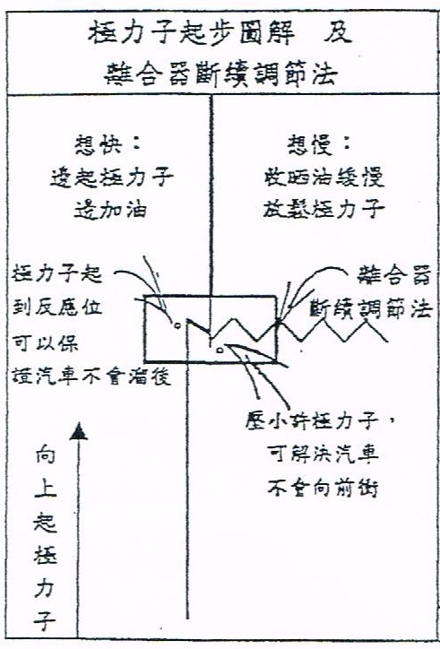 1. 「引擎稍為沉聲」失敗因為你大意或起步時引擎「轉數」不足。